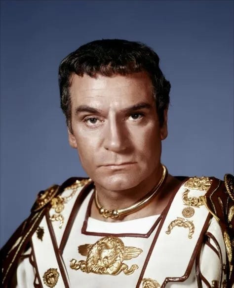 Yet, somehow, I accept Olivier as the Mahdi. Perhaps it’s because he also gave him a deformed upper lip. Makeup really set Olivier free on a certain level, a theatrical level, which it should to an actor. One thing is for sure, Laurence Olivier liked makeup. He was quoted a number of times saying that he never appeared without doing something to his nose, extending it, widening it, shoving things up his nostrils. I think his nose looks perfect in Spartacus (1960).